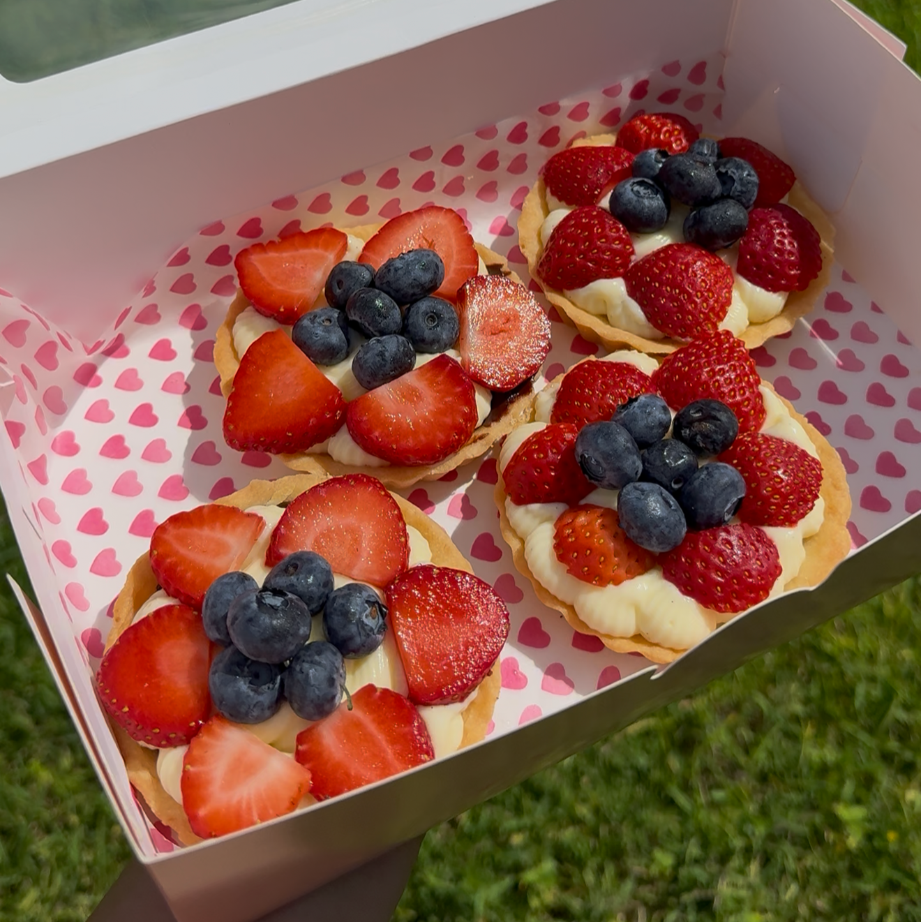 A little slice of heaven in every bite. This tart starts with a buttery, crisp sablée crust, layered with a thin coat of rich dark chocolate, then filled with smooth, homemade pastry cream. On top, we pile on fresh strawberries and juicy blueberries for the perfect balance of sweet, creamy, and refreshing. It’s a customer favorite — perfect for treating yourself or impressing guests.
